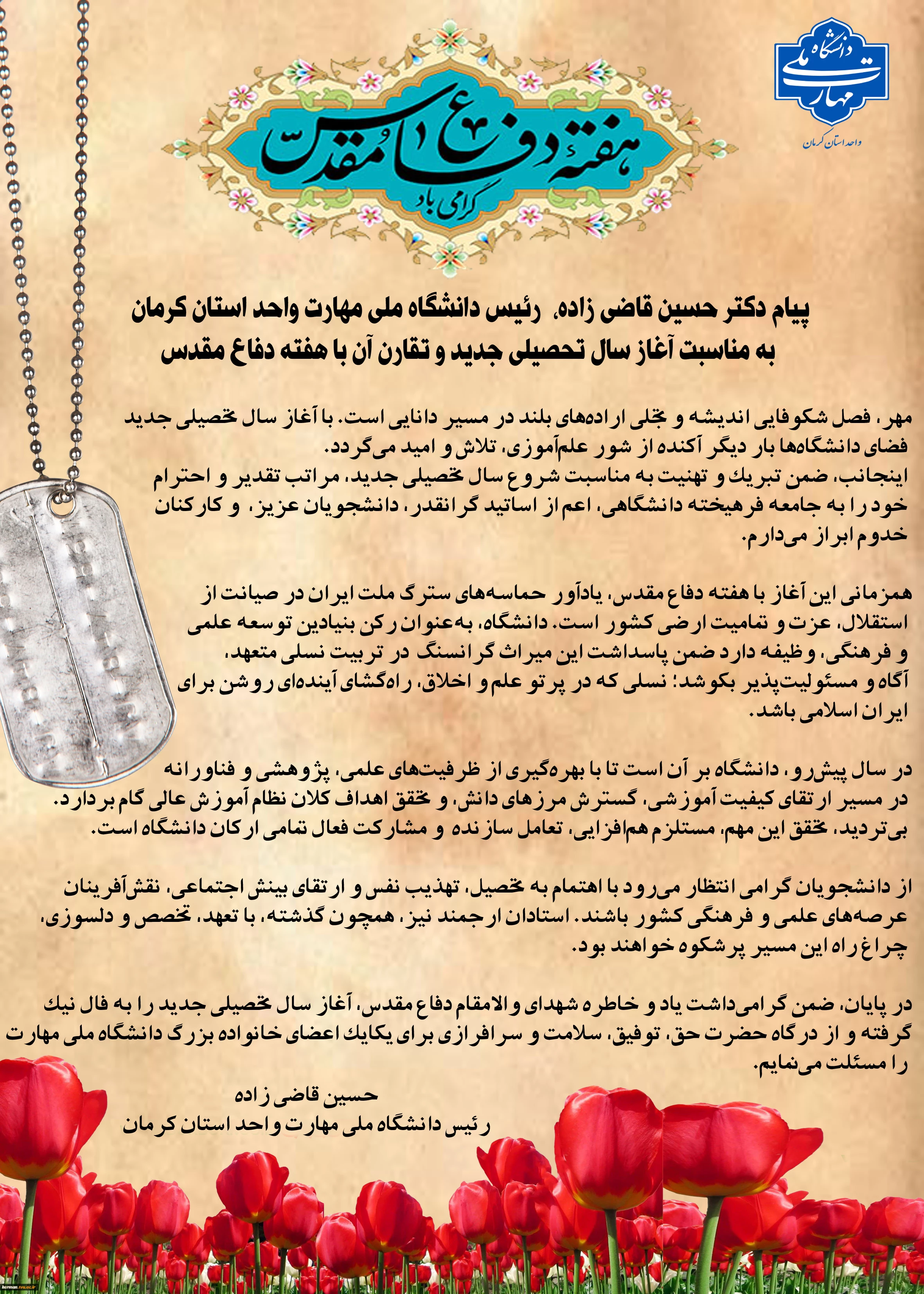امتیاز دهید : در آستانه شروع سال تحصیلی: پیام رئیس دانشگاه ملی مهارت واحد استان کرمان به مناسبت آغاز سال تحصیلی جدید و تقارن آن با هفته دفاع مقدس 2 دوشنبه 31 شهریور 1404 ساعت 8:22
