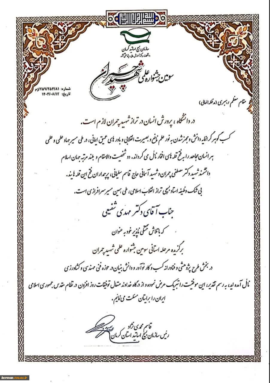 امتیاز دهید : عضو هیأت علمی دانشگاه ملی مهارت واحد استانی کرمان، برگزیده پژوهشی سومین جشنواره علمی شهید چمران در حوزه فنی، مهندسی و کشاورزی 5 سهشنبه 13 آبان 1404 ساعت 7:56